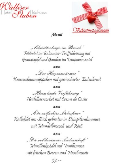 Valentinstagmenü am 14. Februar